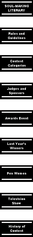 Honorable Mentions: Valerie Nieman of Greensboro, NC for Correspondences; Nancy Avery Dafoe of Homer, NY for Out of a Mountain of Despair; Michele Merens of Bayside, WI for When Everything Mine Should Have Been Yours; Lyzette Wanzer of San Francisco, CA for Learning to Speak Chocolate; Theresa Lebeiko of San Carlos, CA for One of Them JAIME CAT CALLAN HUMOR PRIZE
